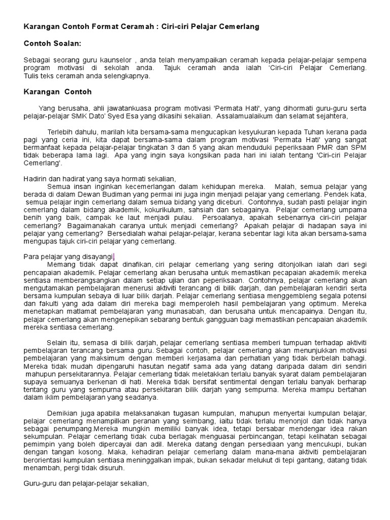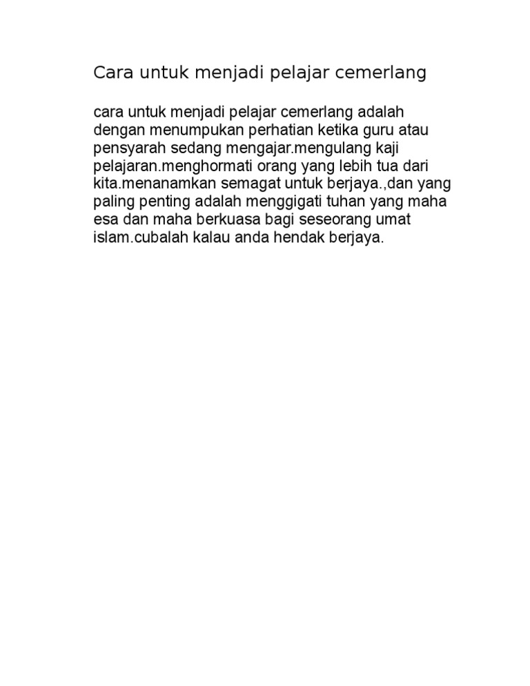 Dengan ini mereka akan disukai oleh guru-guru dan rakan-rakan. Tuliskan karangan ciri-ciri menjadi pelajar yang cemerlang. Kunci kepada kejayaan adalah dengan mengenali diri sendiri Berderap seiring berjalan pulang.